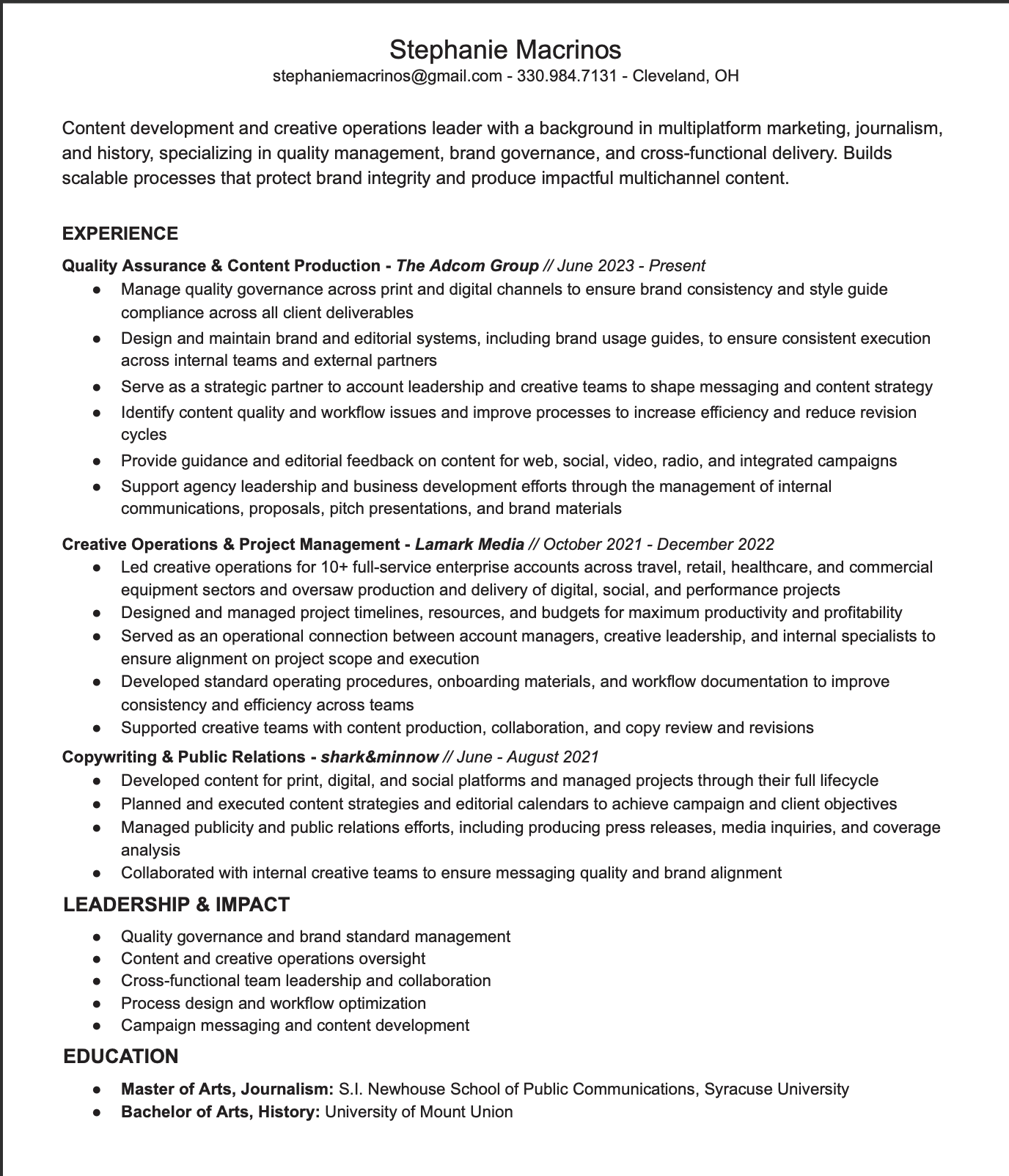 Stephanie Macrinos: Content Development & Creative Operations